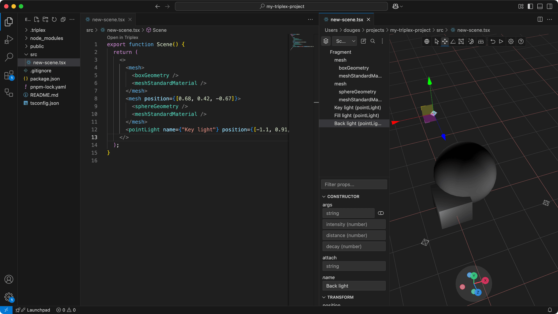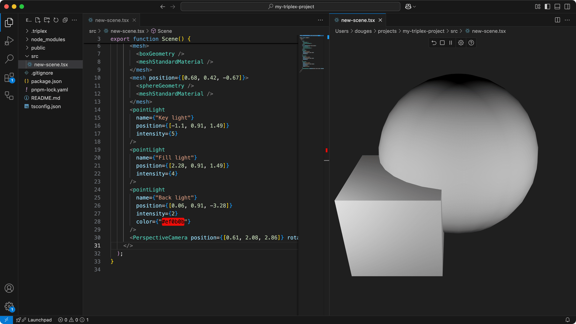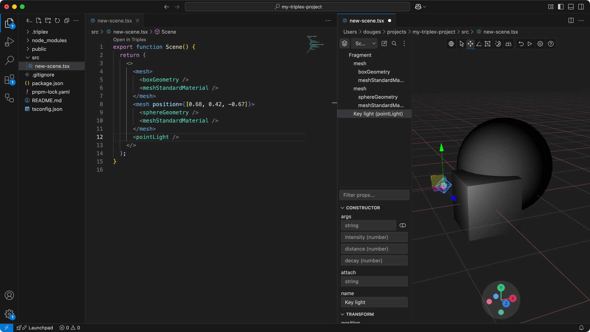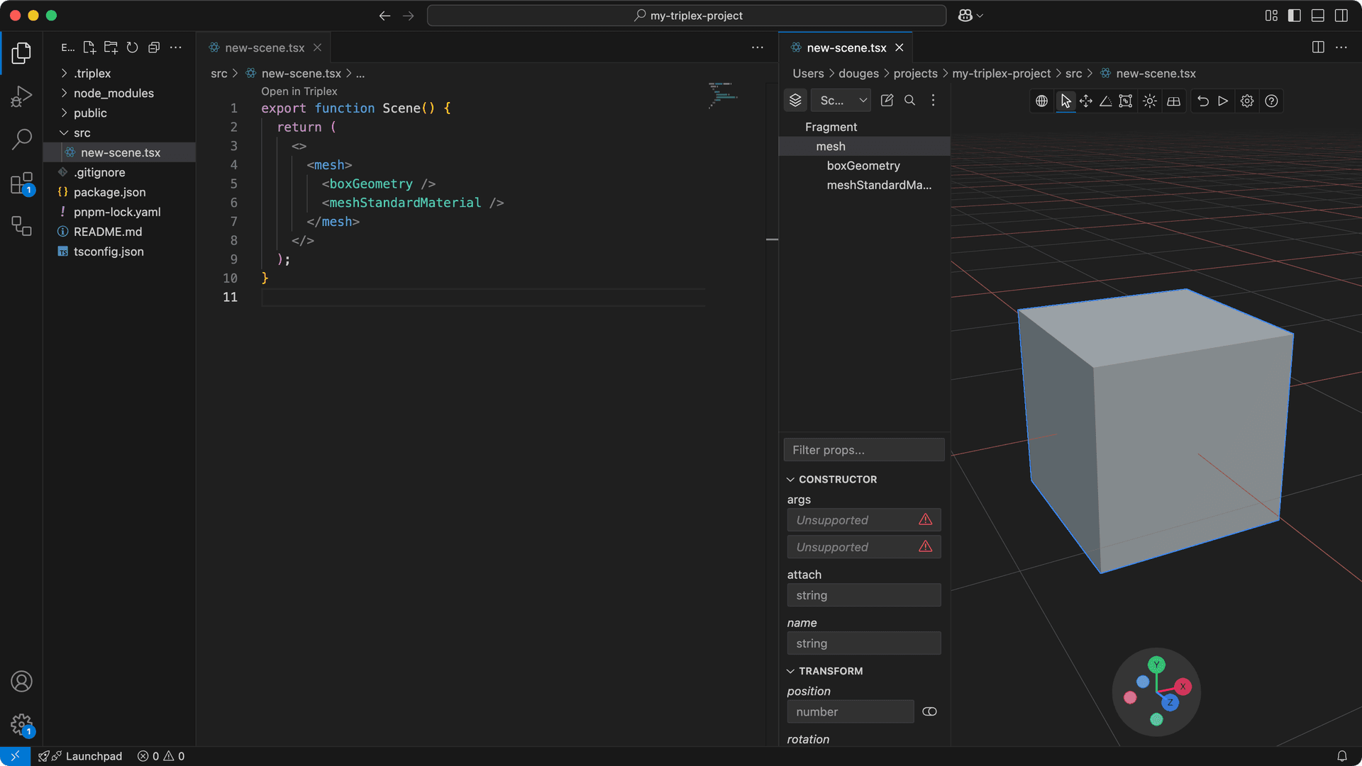 Let's create your first component with Triplex! No experience is needed to follow along however it's assumed you have a project set up after following a page under Starting a Project.